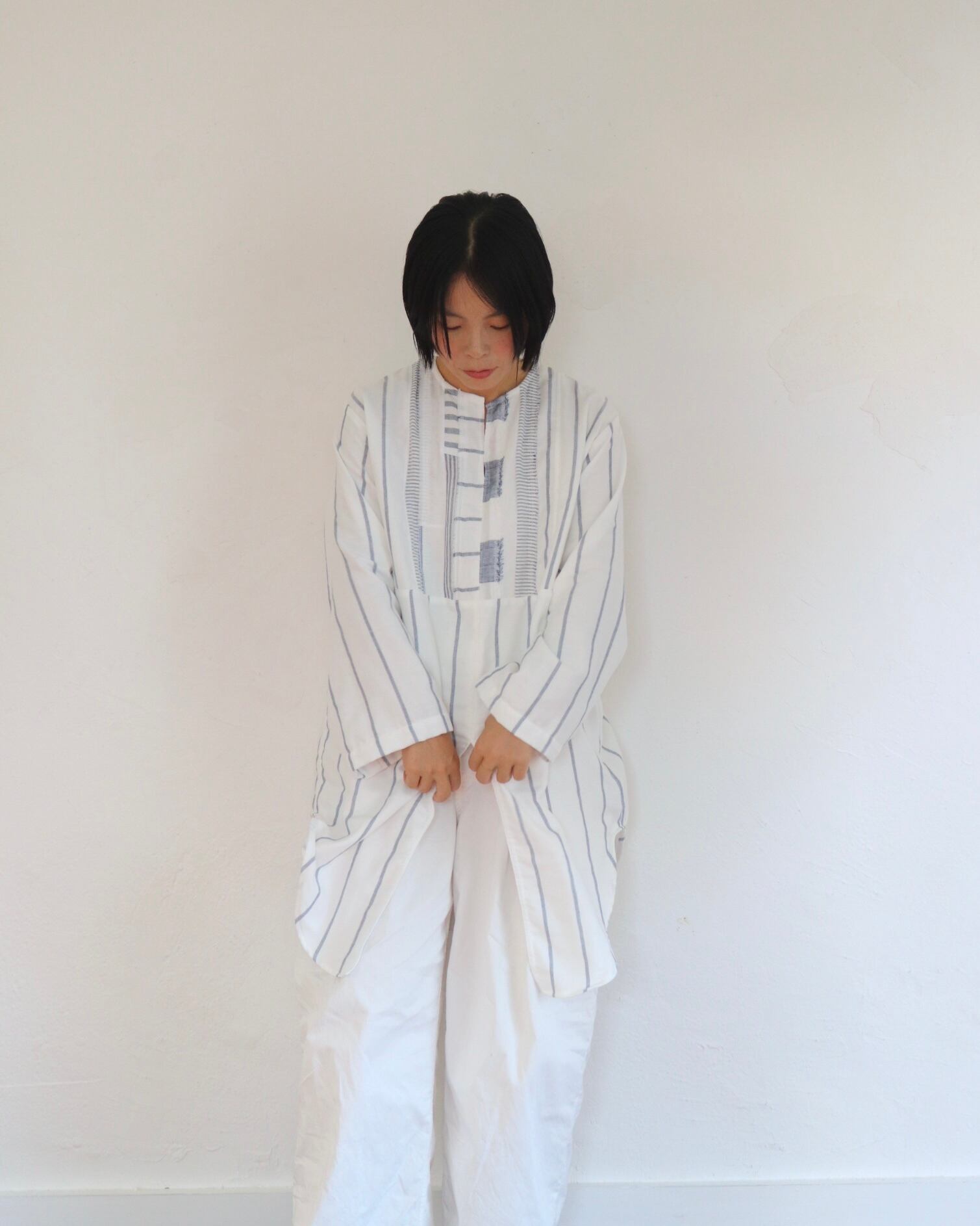 生地は中肉厚のヘリンボーンに織られたダブルガーゼ。包まれてる心地良さを感じる一枚となりました。